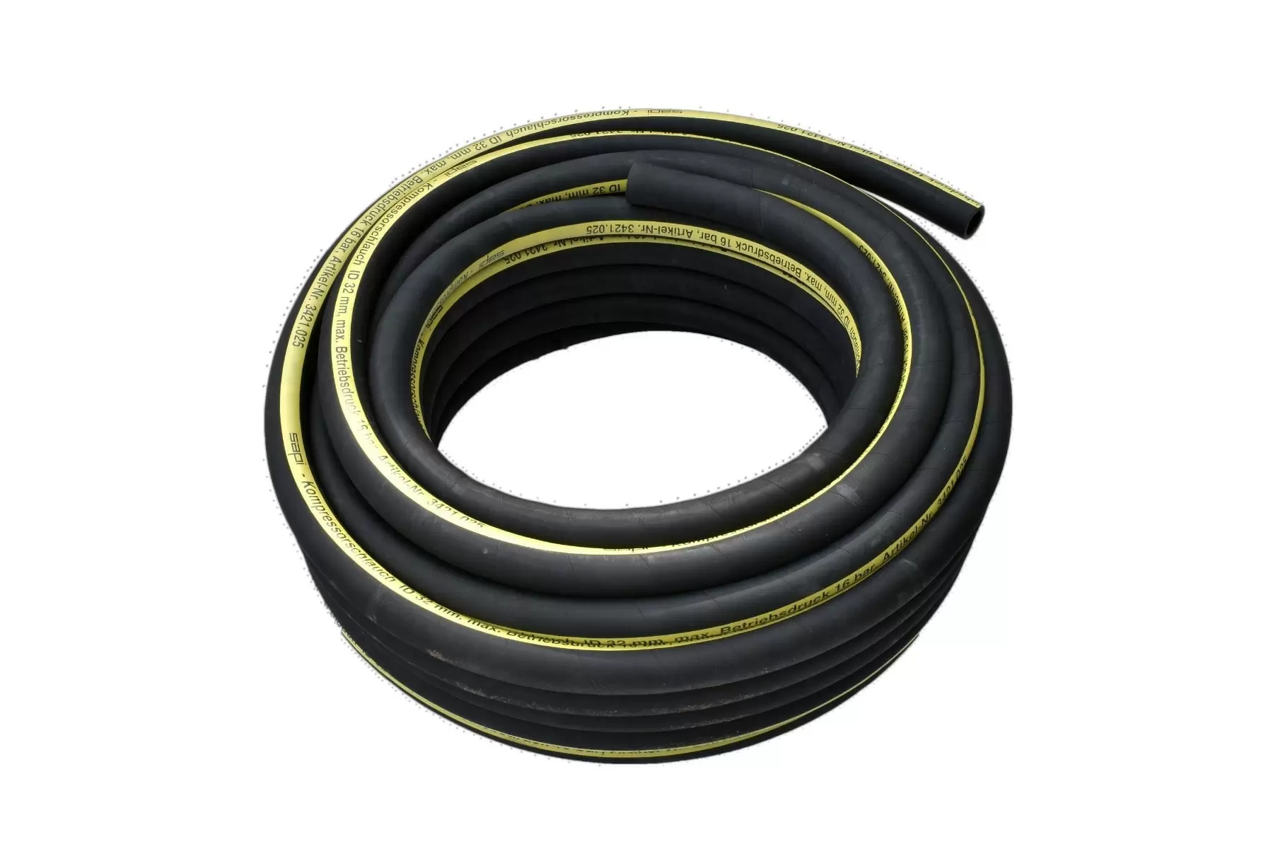 Flexible, robust and hard-wearing compressed air hose made of EPDM with a synthetic textile insert for conveying compressed air.
